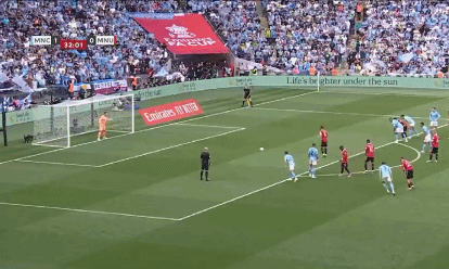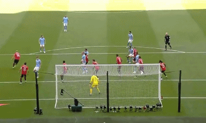 第51分钟,德布劳内罚出定位球,京东安不停球射门,曼城2-1。