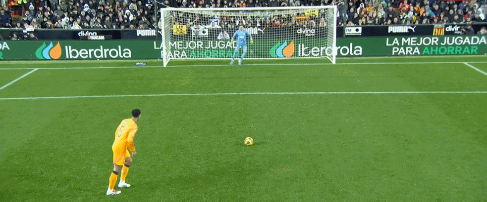 第52分钟,贝林厄姆主罚的点球击中立柱弹出。
